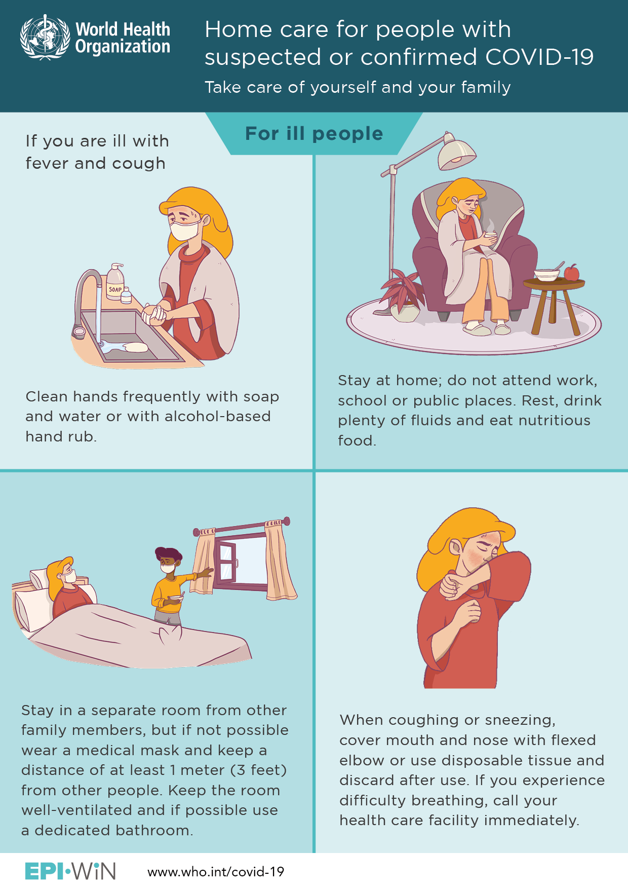 - If you live with others and home care for COVID-19 is advised by your health-care worker, other household members should follow available guidance on home care for patients with COVID-19 presenting with mild symptoms and management of their contacts (guidance here). See related flyers for people who are ill, for household members and for caregivers.